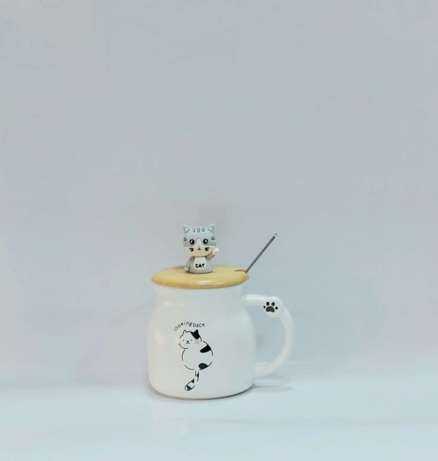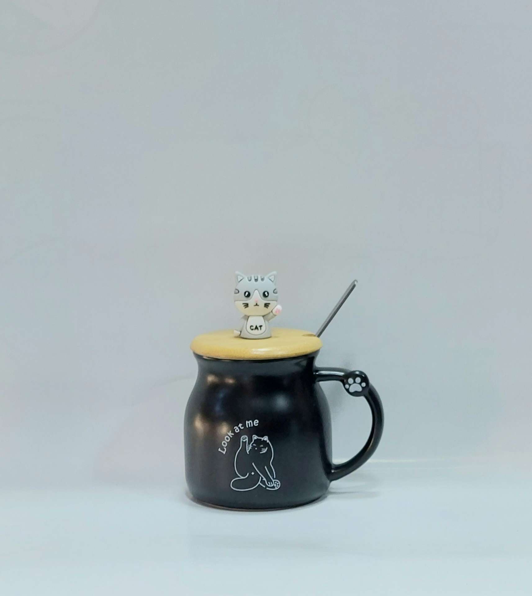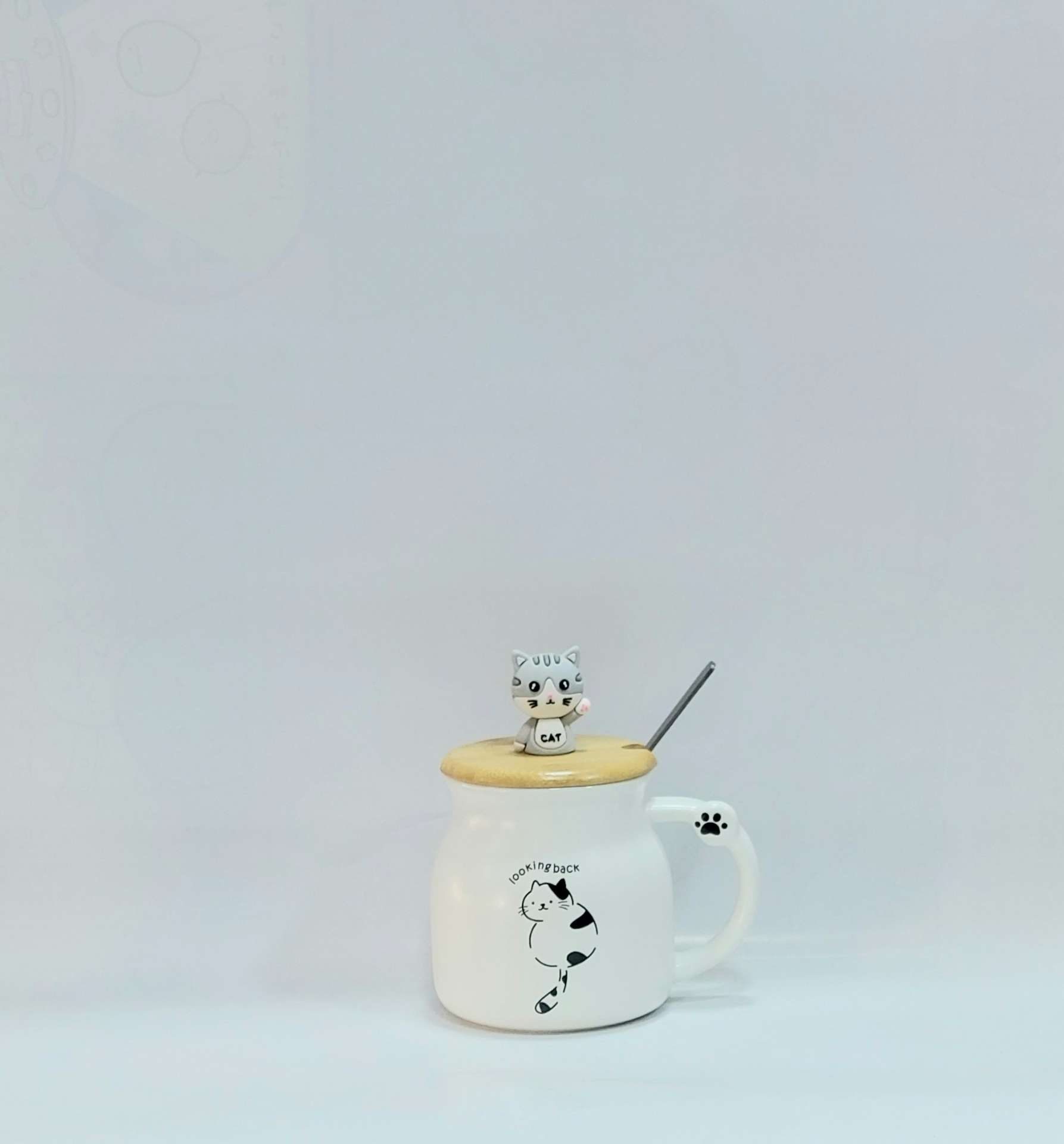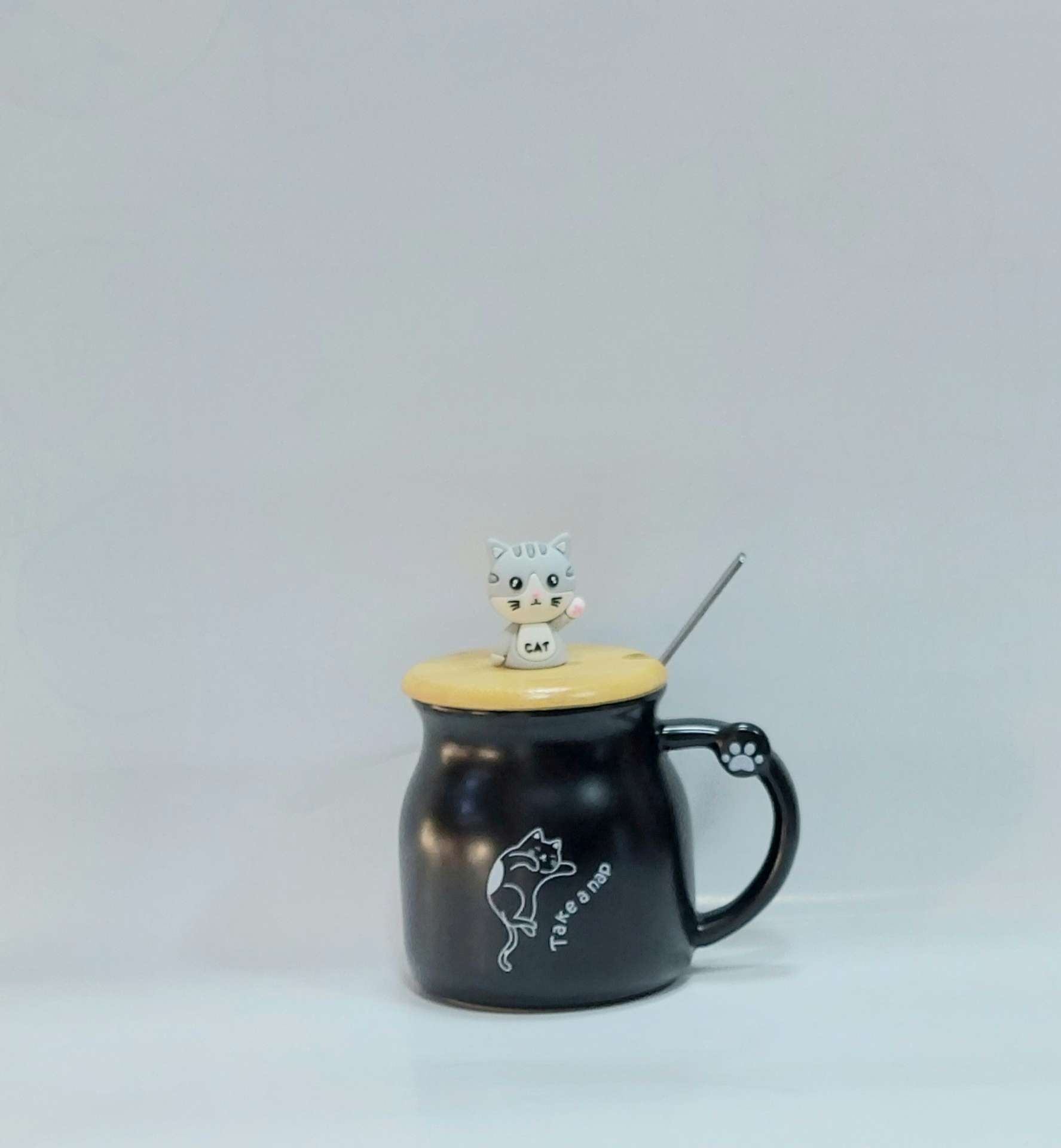 ماگ سرامیکی درب بامبو قاشقدار طرح گربه (سفید و مشکی)، محصولی شیک، باکیفیت و کاربردی برای استفاده روزانه یا هدیهای خاص و ماندگار.