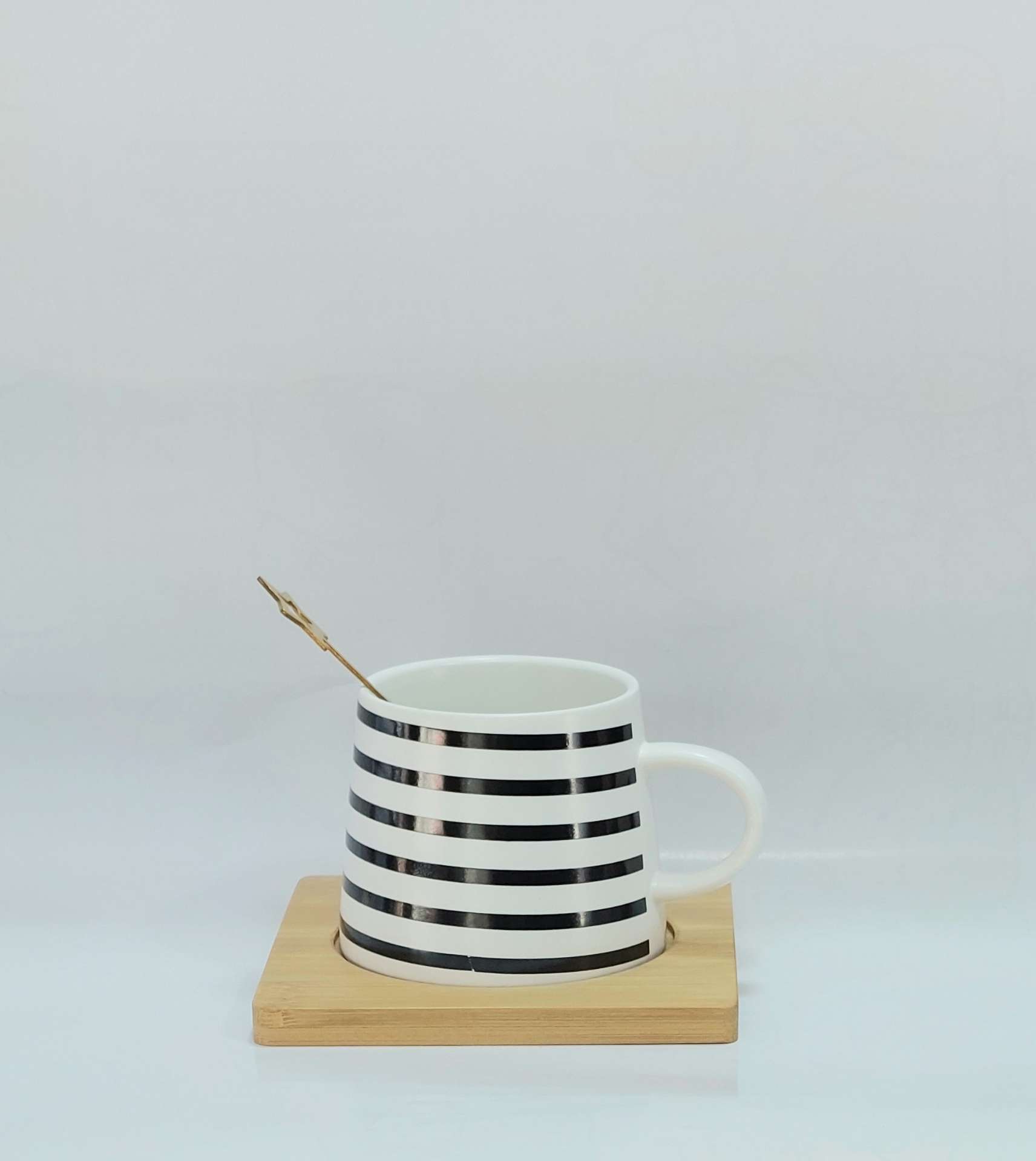 ماگ سرامیکی با زیره بامبو و قاشق دار – کیفیت درجه ۱ وارداتی
