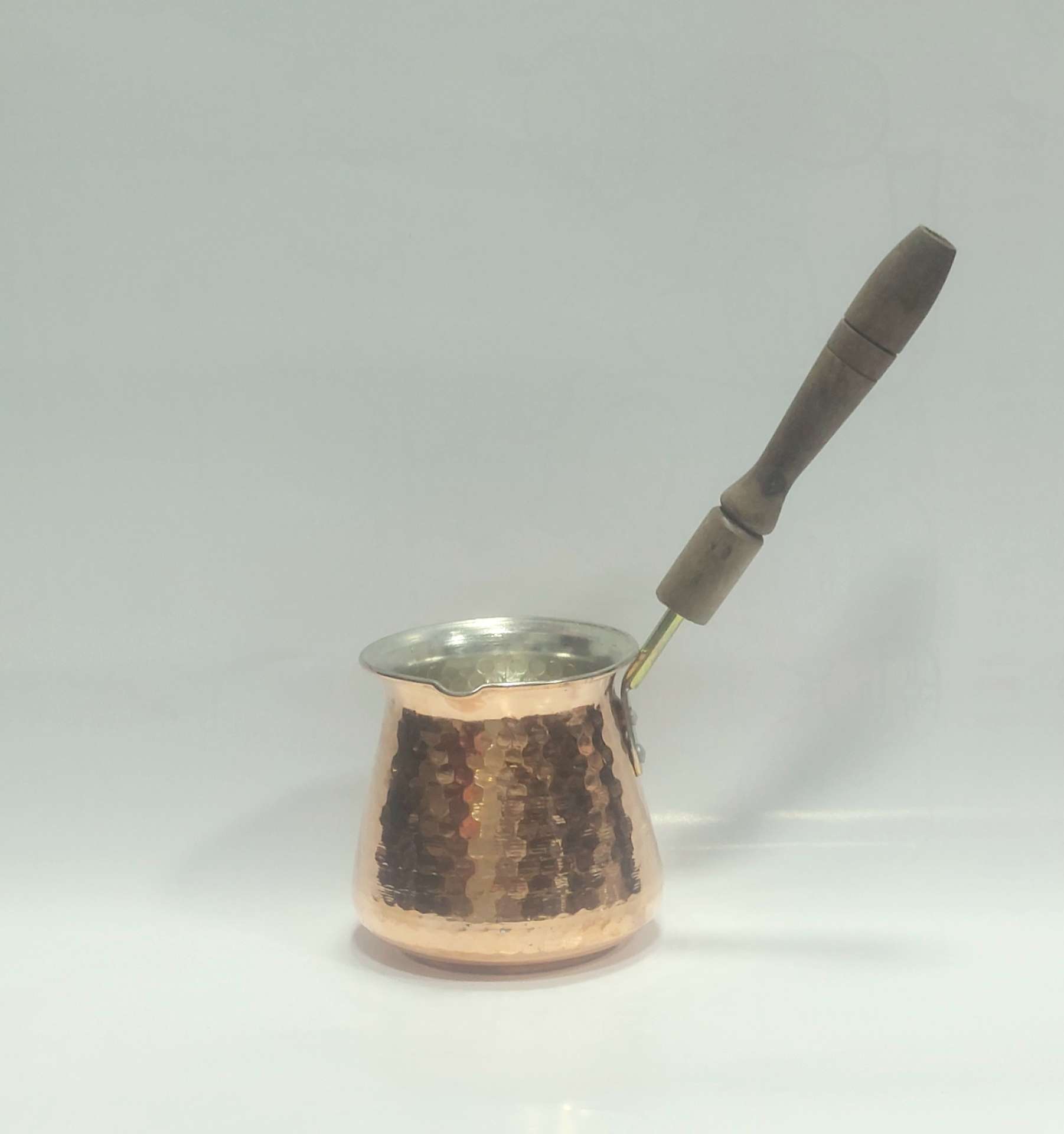 جنس بدنه: ساختهشده از مس باکیفیت ایرانی. رسانایی عالی مس باعث میشود حرارت یکنواخت پخش شده و قهوه به بهترین شکل دم بکشد.