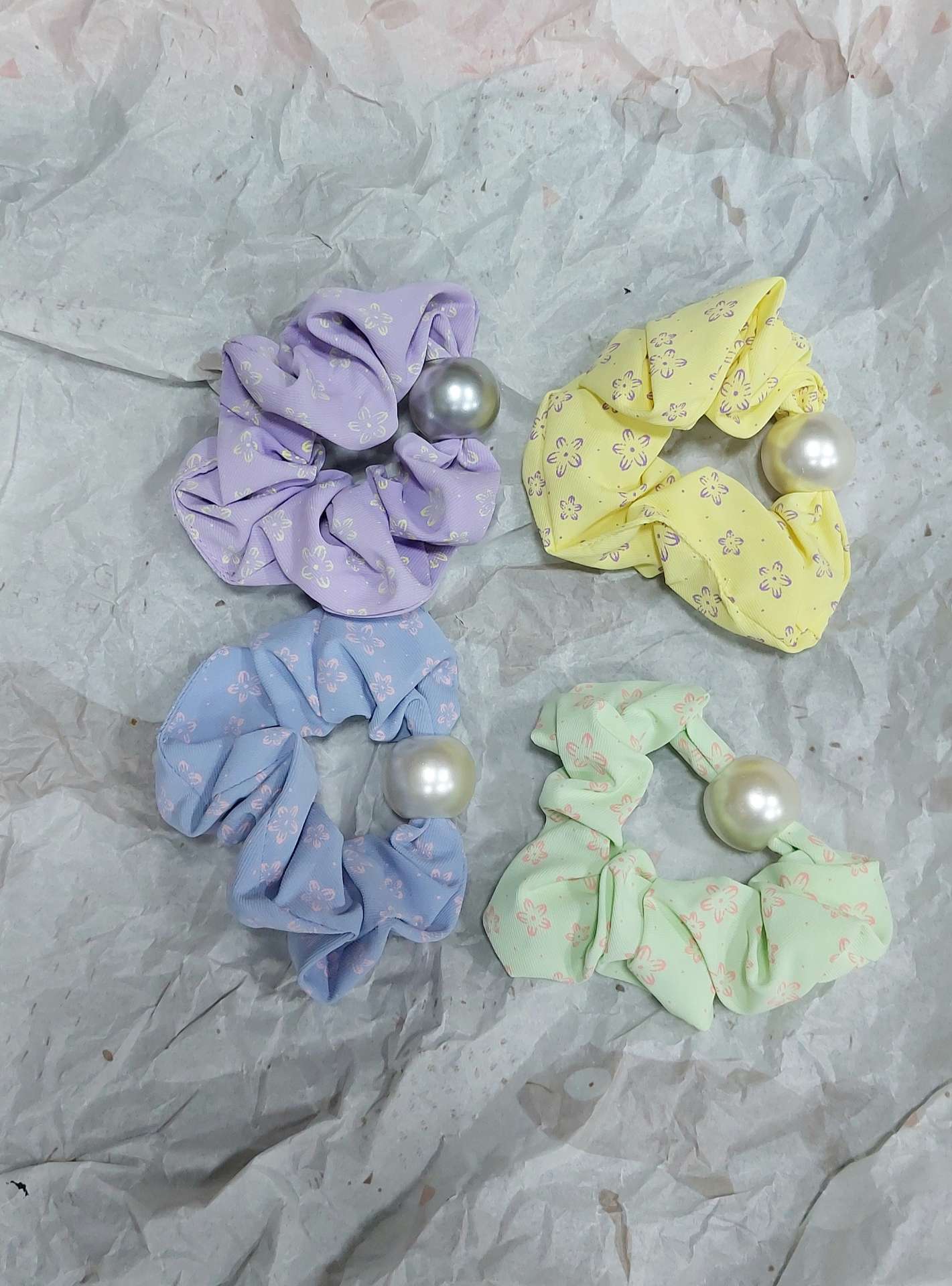 🔸 اسکرانچی مو طرح گل مروارید وارداتی