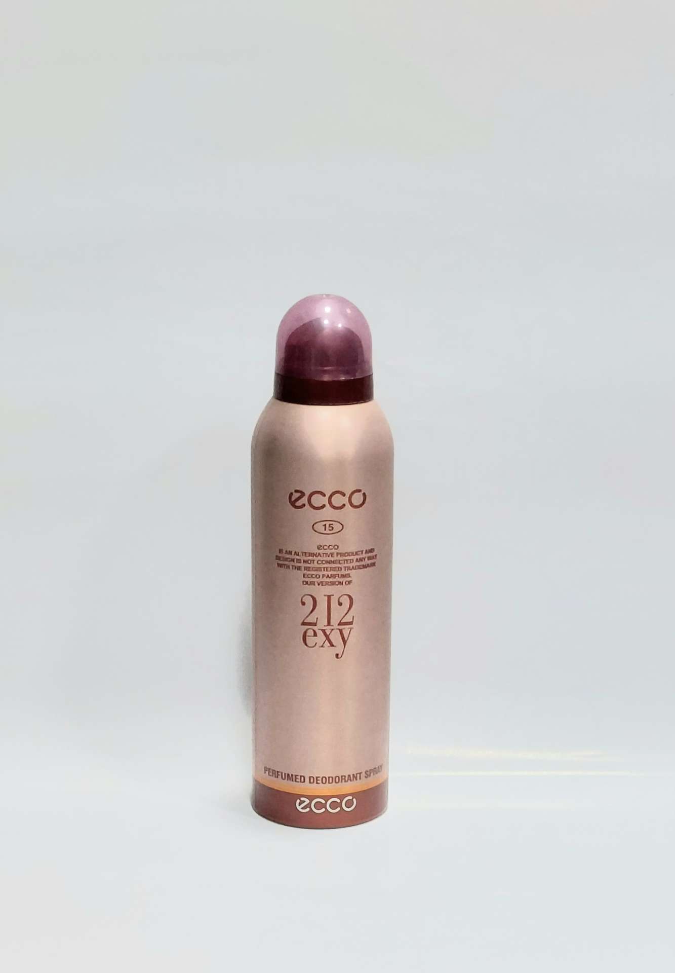 «Ecco 212 Exy» یکی از اسپریهای پرطرفدار برند اکو (Ecco) است که رایحهاش الهامگرفته از عطر مشهور 212 Sexy کارولینا هررا میباشد. این محصول با ترکیبی از رایحههای گرم، شیرین و کمی چوبی طراحی شده تا حس جذابیت و اعتماد بهنفس را القا کند.
