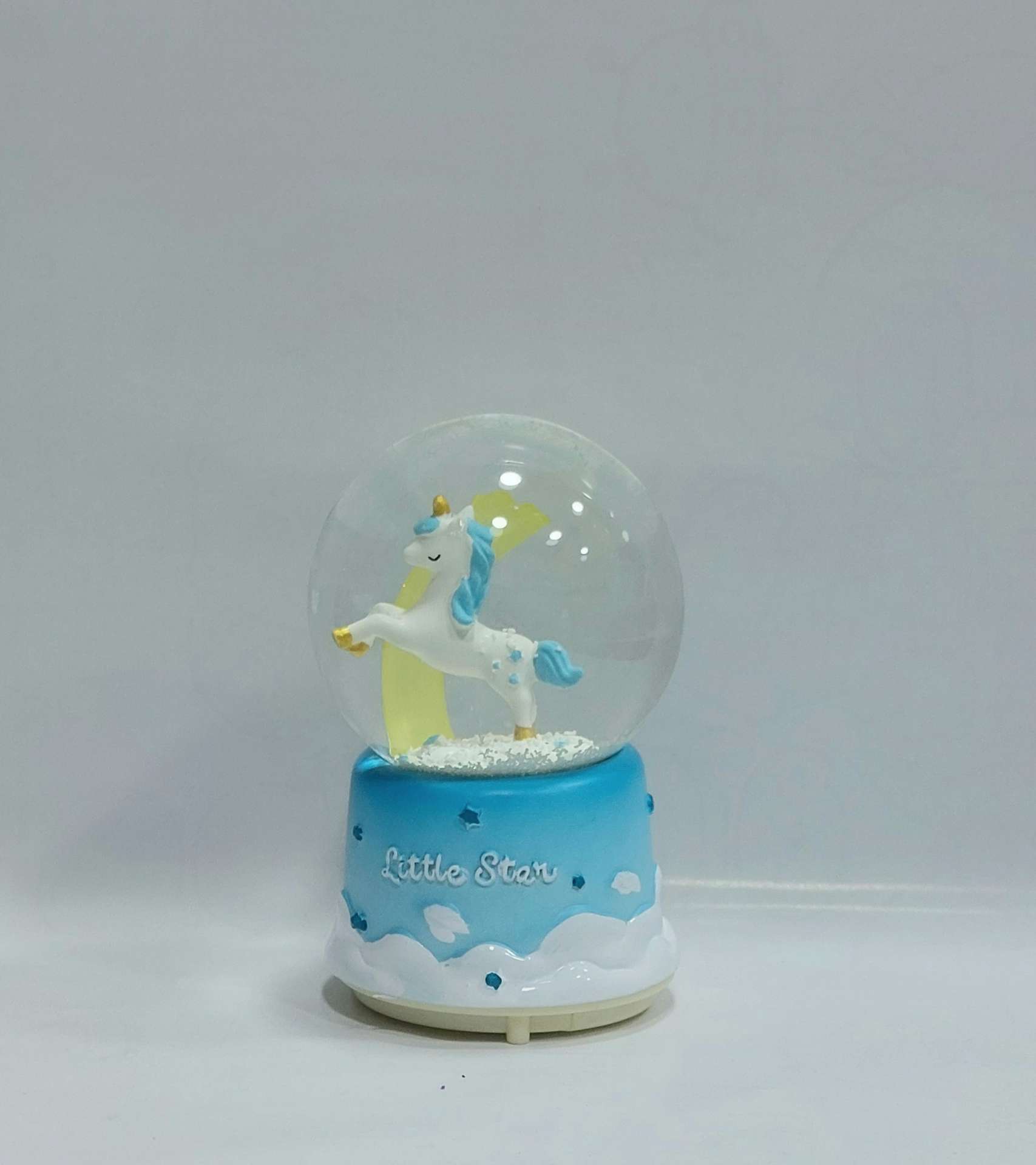 درون این گوی زیبا، اسب تکشاخی براق و بامزه روی ماهی درخشان قرار دارد که حس آرامش و خیالپردازی کودکانه را زنده میکند.