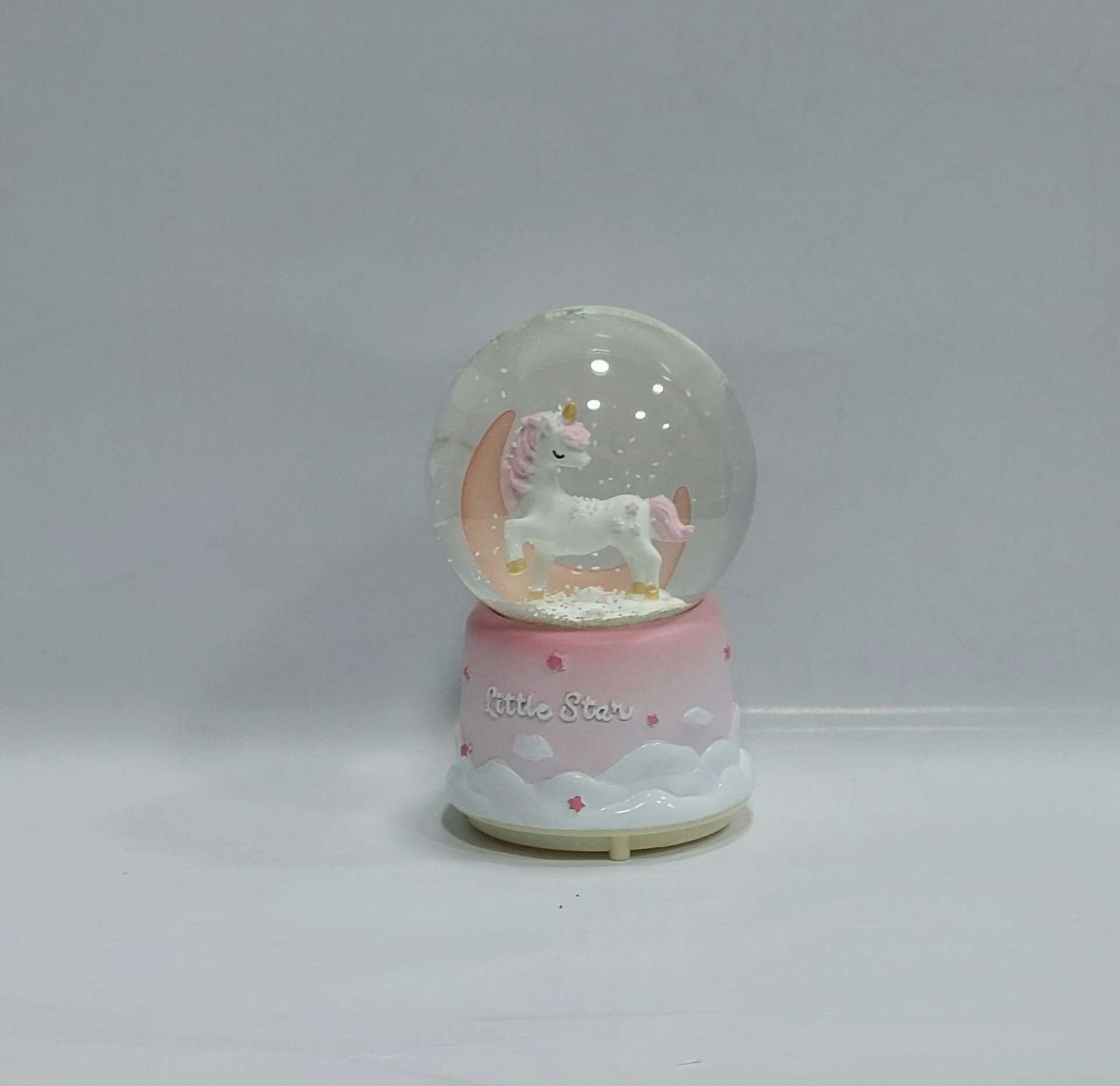 گوی موزیکال چراغدار مدل اسب تکشاخ و ماه سایز ۱۲×۵، هدیهای خاص و فانتزی برای کسانی است که عاشق رنگهای لطیف و طراحیهای خیالی هستند.