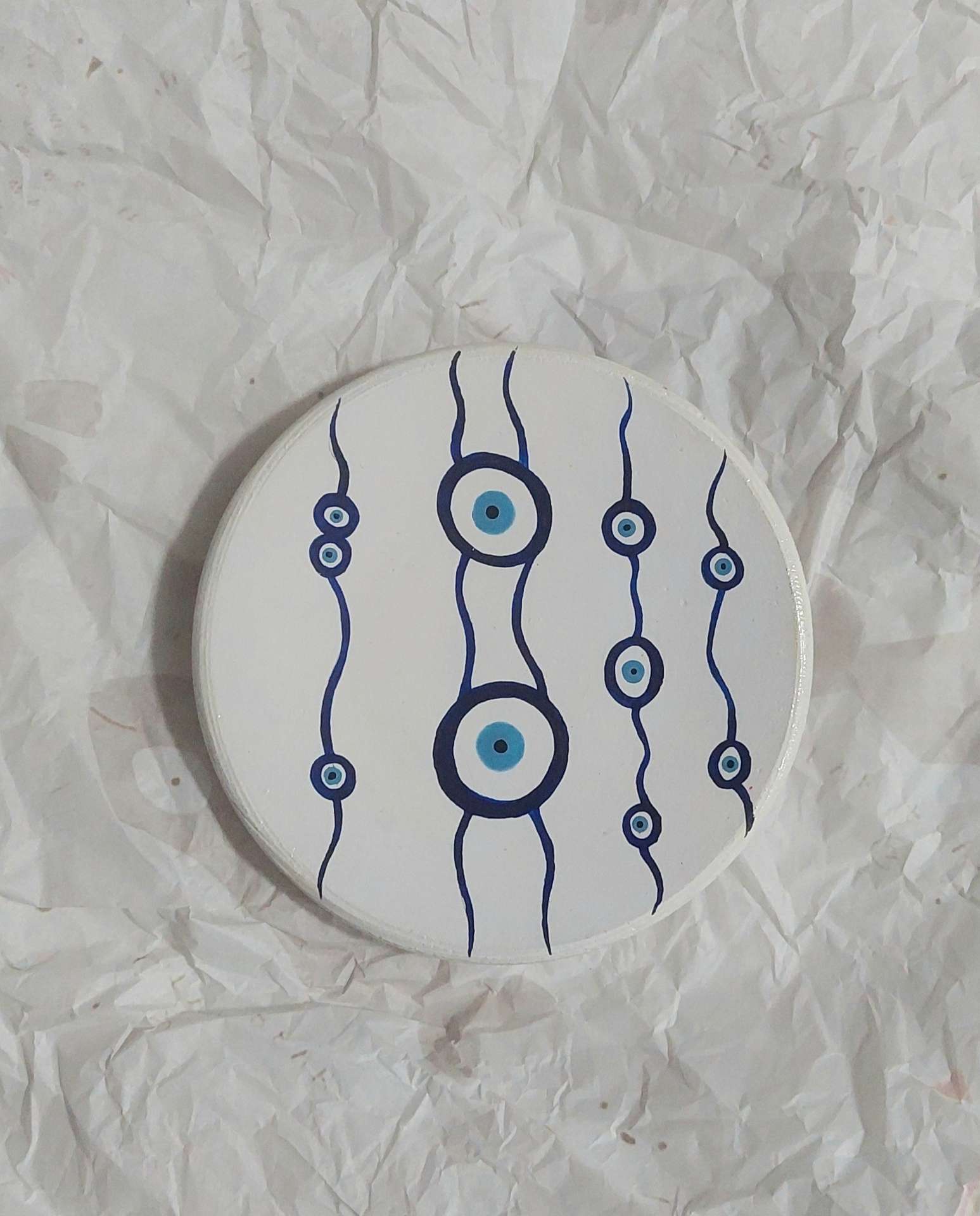 🪶 توضیحات محصول: دیوارکوب سفالی دست‌ساز طرح چشم‌نظر