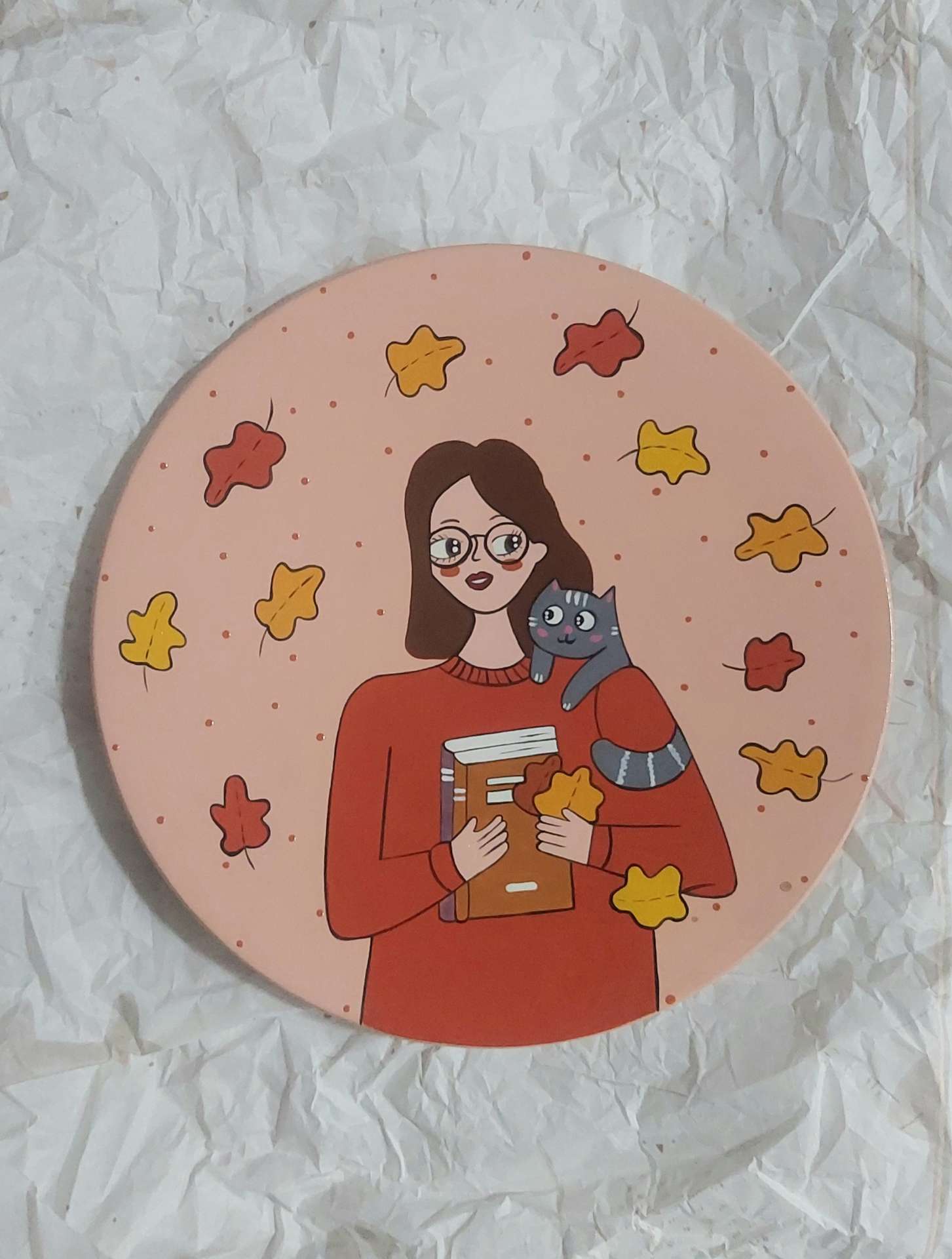 این دیوارکوب سفالی هنرمندانه با قطر ۲۰ سانتی‌متر، الهام‌گرفته از حس آرام و دل‌نشین پاییز است. طرح دختر کتاب‌به‌دست، نمادی از آرامش، اندیشه و لحظه‌های خلوت دل‌پذیر در میان رنگ‌های نارنجی و طلایی این فصل زیباست.