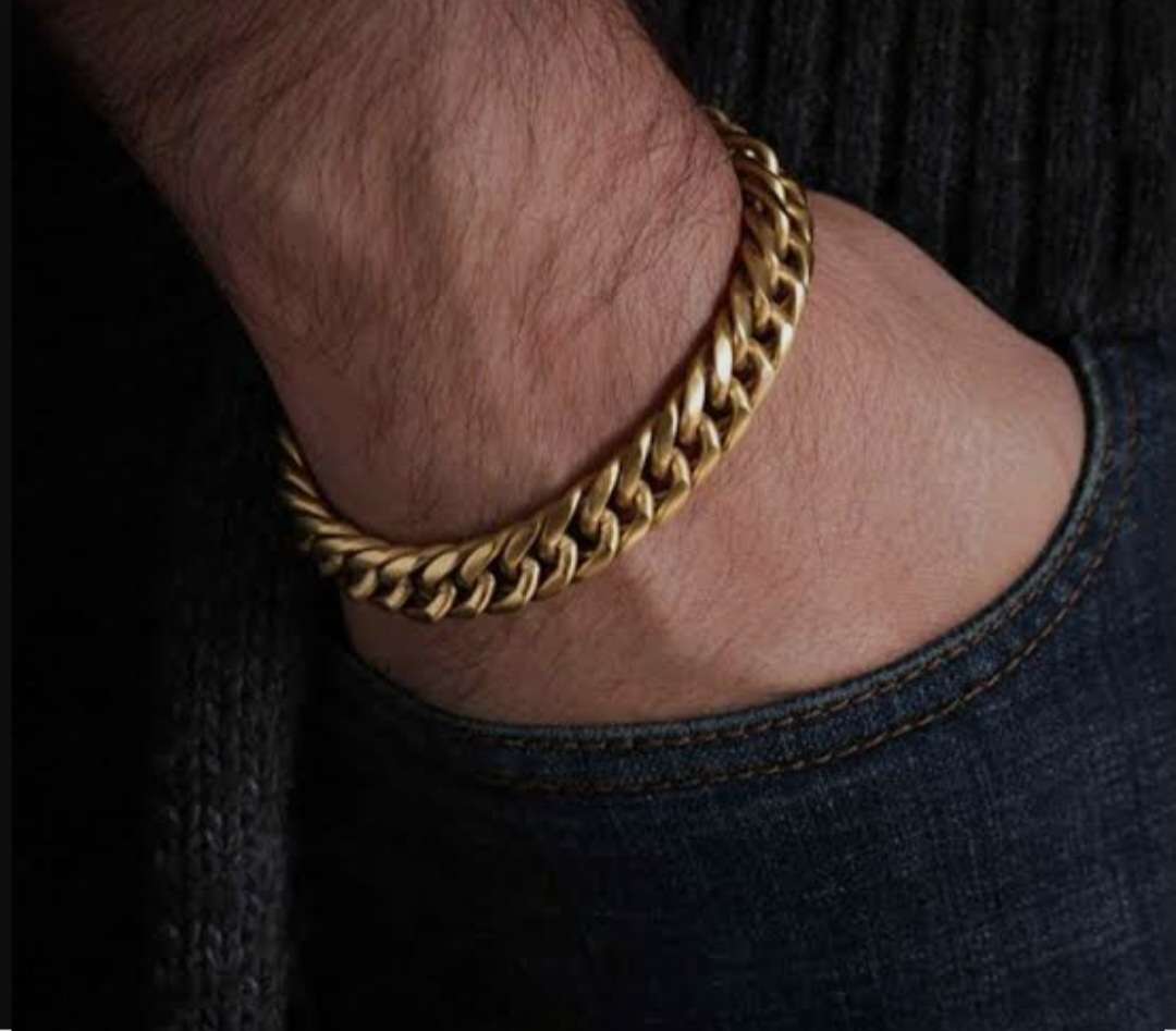 این دستبند با سایز درشت و رنگ طلایی خیرهکننده، جلوهای لوکس به استایل شما میبخشد و توجهها را به دستان شما جلب میکند.