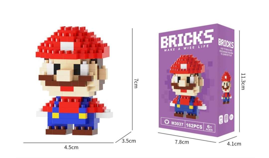 اگر مدل BRICKS یا لگو مانند مینی فیگور ماریو داشته باشیم، معمولاً شامل: