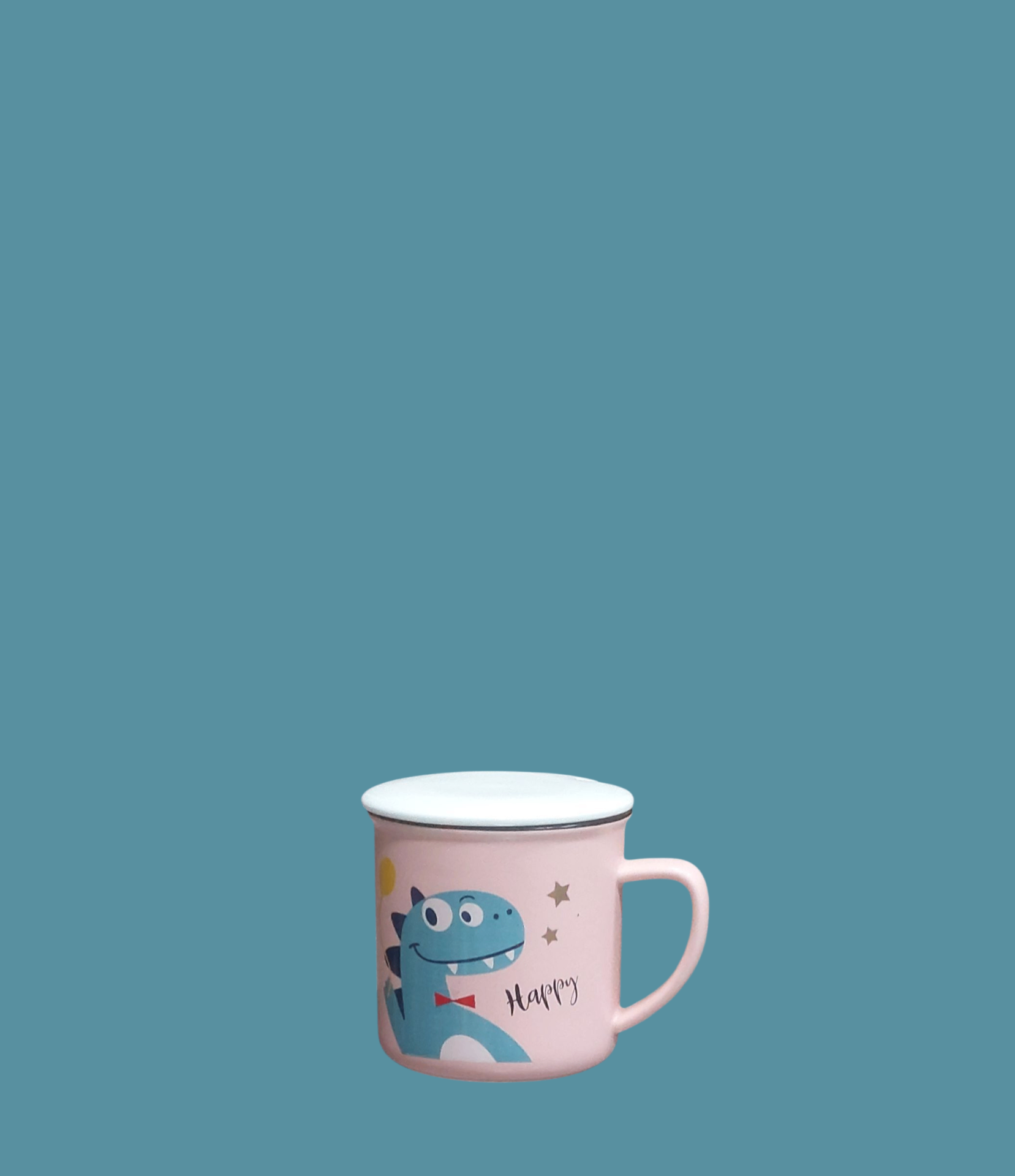 ماگ سرامیکی درب قاشق دار طرح دایناسور گوگولی رنگ پاستلی باکیفیت