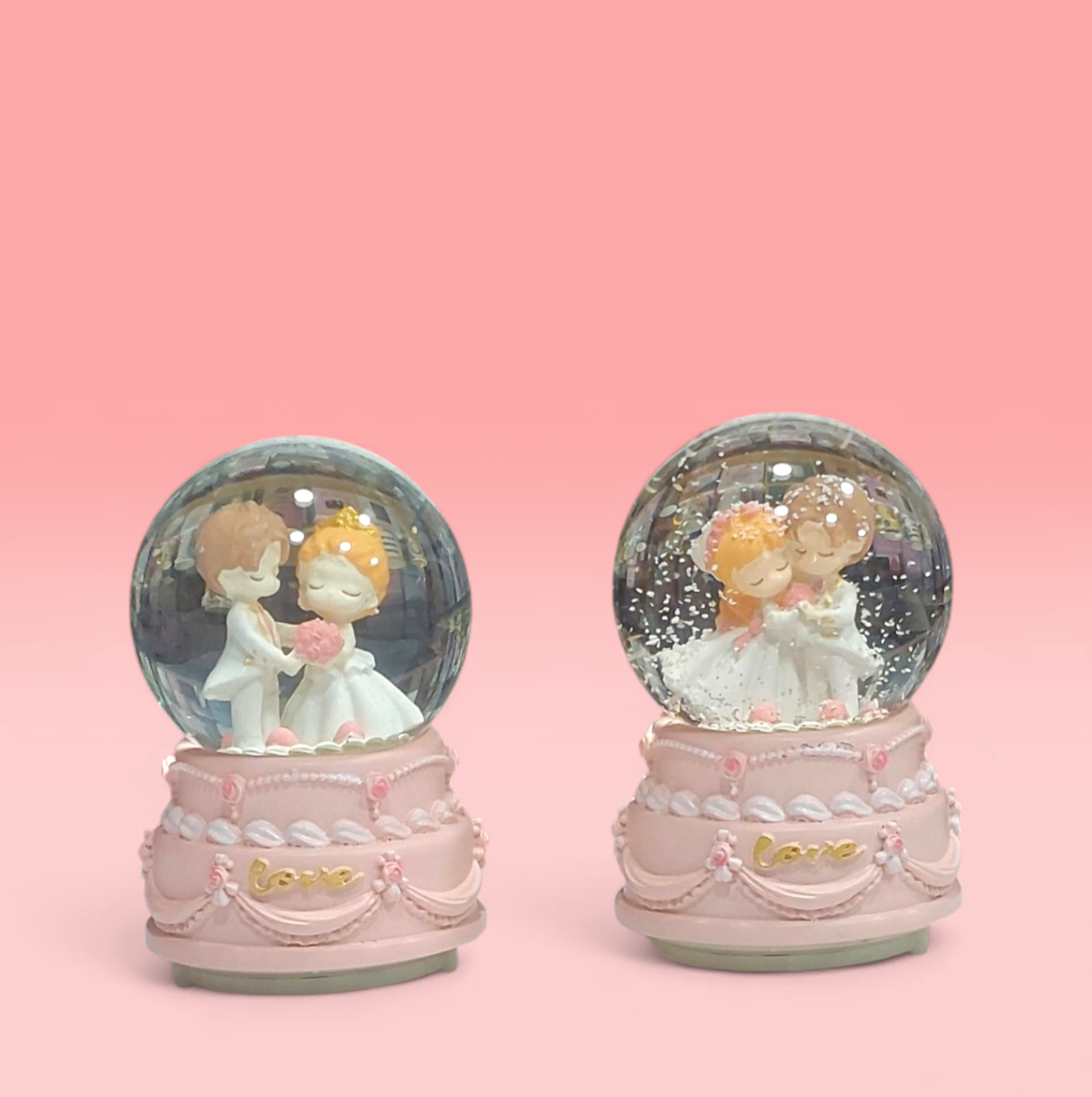 گوی موزیکال بسیار خاص و شیک با طراحی عاشقانه عروس و داماد، انتخابی بی‌نظیر برای هدیه دادن در روز عشق، روز زن و سایر مناسبت‌ها و روزهای خاص.